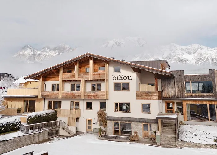 Det 3-stjärniga hotellet Biyou Ecoquartier In Den Bergen Schladming ligger i distriktet Rohrmoos, ungefär 10 minuters bilresa från Moserboden skidlift och inom 3 km från 8er Sesselbahn Märchenwiese. Det erbjuder bagageförvaring. Dessutom kan gästerna dra nytta av ridturer, som tillhandahålls av detta hotell.